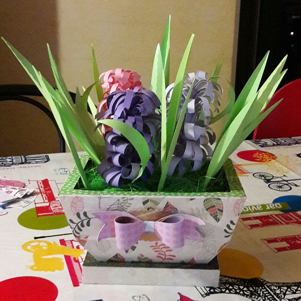voici un pot de jacinthe faite avec la cameo ,toute est fait en papier